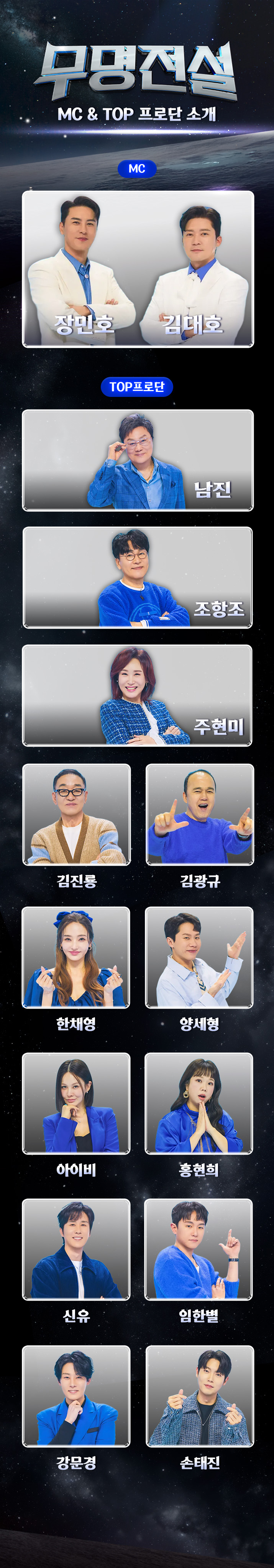 무명전설은 이름은 아직 낯설지만 실력만큼은 ‘전설급’인 트로트 가수들이 주인공이 되는 오디션 프로그램이에요. 화려한 이력보다 가창력과 진정성으로 승부하는 무대라서 매회 감동과 반전이 이어지고 있어요.